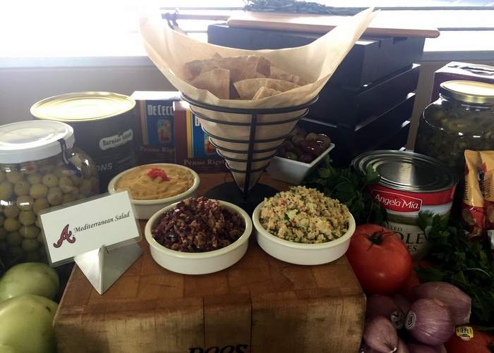 A lighter option for 755 Club members is the Mediterranean Salad. Spread roasted garlic hummus, olive tapenade with feta cheese or tabouli over pita chips for a guilt-free snack. Take away the pita chips for a gluten-free version. 755 Club