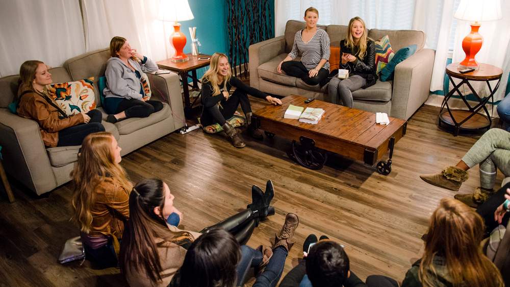 Photo: Leading one of her Free Fab’rik events benefitting victims of sex trafficking, Dana (seated, center) speaks with those women and volunteers at City of Refuge in Atlanta.