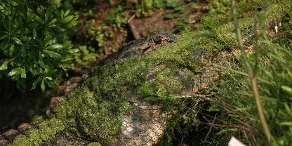 Photo: Norm, a 14- to 15-foot-long alligator, the namesake of Norm's Pond, is covered with plankton for camouflage while waiting for a meal. The pond is located on the southern end of Little St. Simons Island.