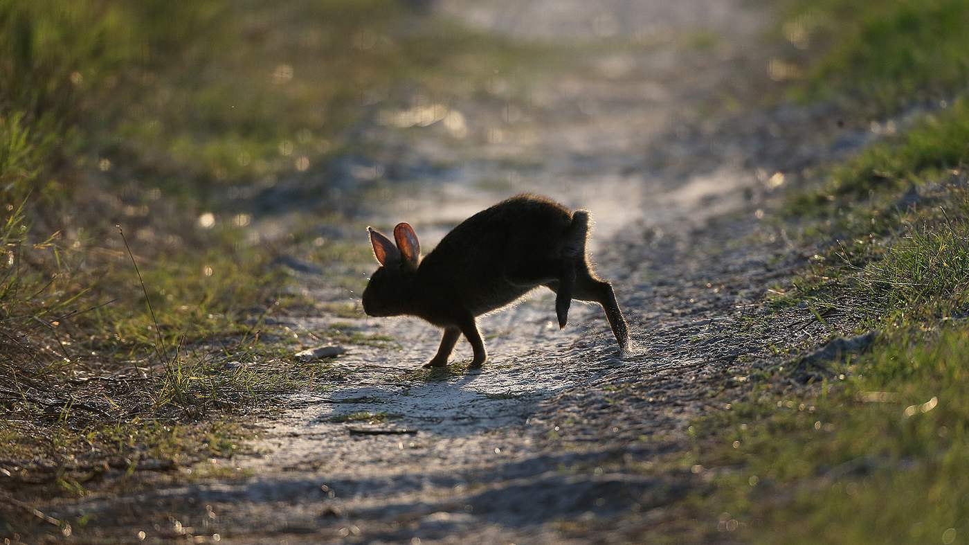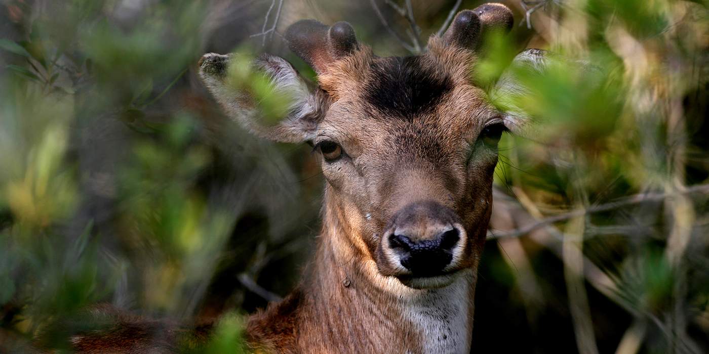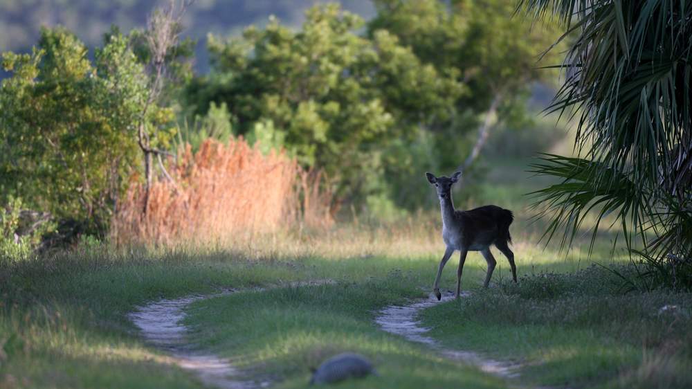 Photo: A European fallow deer rounds the bend on Parallel Road at Deer Marsh on the northern end of Little St. Simons Island.