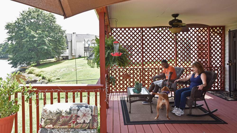 Photo: Leon plays with Vicki's dog Bobby as Vicki looks on at her home in Morrow. Hyosub Shin, hshin@ajc.com