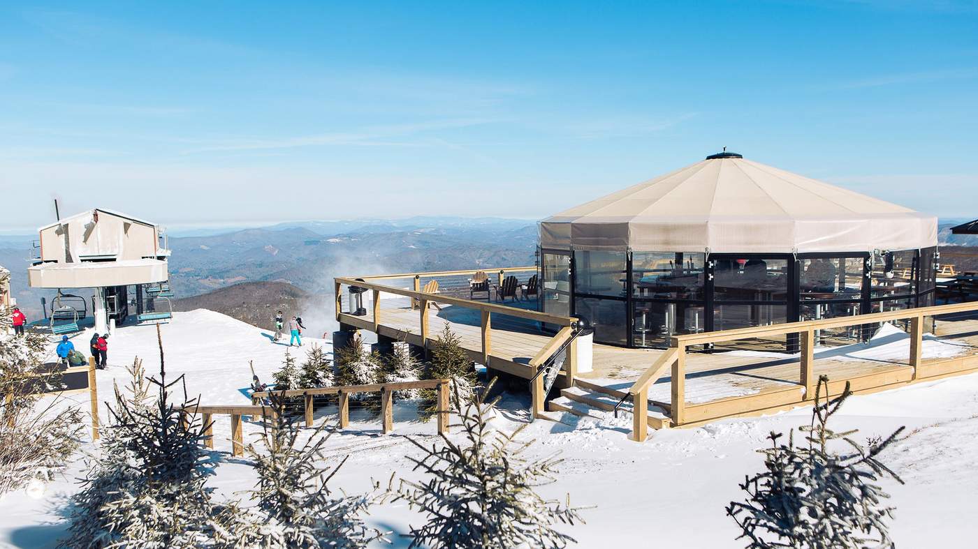 At the top of Beech Mountain Resort is 5506’ Skybar, a haven with 360-degree views. Constructed in 2013, the glassed-in yurt and surrounding deck offer respite to skiers and snowboarders in winter as well as mountain bikers, hikers, disc golfers and folks looking for an excuse to ride the lift in summer. The food and drink menu includes selections of Beech Mountain Brewing Co. beers, produced in the resort’s Alpine Village, the only ski resort in North Carolina with an on-site brewery. The brewery produces a variety of tasty beers and has become so popular that renovations are underway to double production capacity.